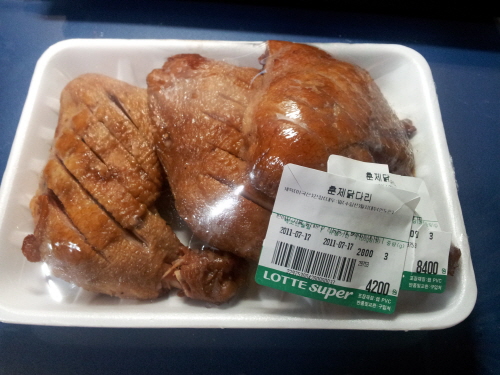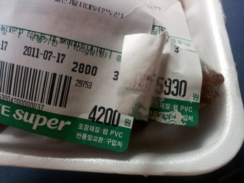 유통기한이야 당일까지라고 점원에게 안내를 받은 상태였기 때문에 그냥 넘어 간다 쳐도 원래 8천400원이라 하던 훈제닭다리에 5천990원이란 가격표가 떡하니 붙여져 있었던 것.