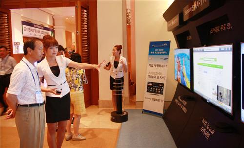 삼성전자는 27일 제주 신라호텔에서 열린 한국능률협회 주관 제37회 하계 최고경영자세미나에서 삼성 스마트 TV 체험존을 마련하고 제품을 시연했다고 밝혔다.