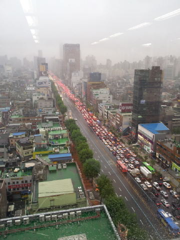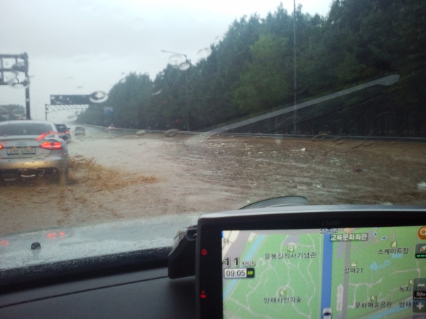 아래 두번째 사진은 강남 대치동 한지역의 침수상황이며 세번째 사진은 경부고속도로 양재IC 하행선 부근, 네번째 사진은 구로디지털단지로 침수깊이가 최고 성인의 목깊이까지 달한 것으로 알려졌으며, 다섯번째 사진은 논현역에서 바라본 강남대로 정체 모습으로 주차장을 방불케하고 있다.