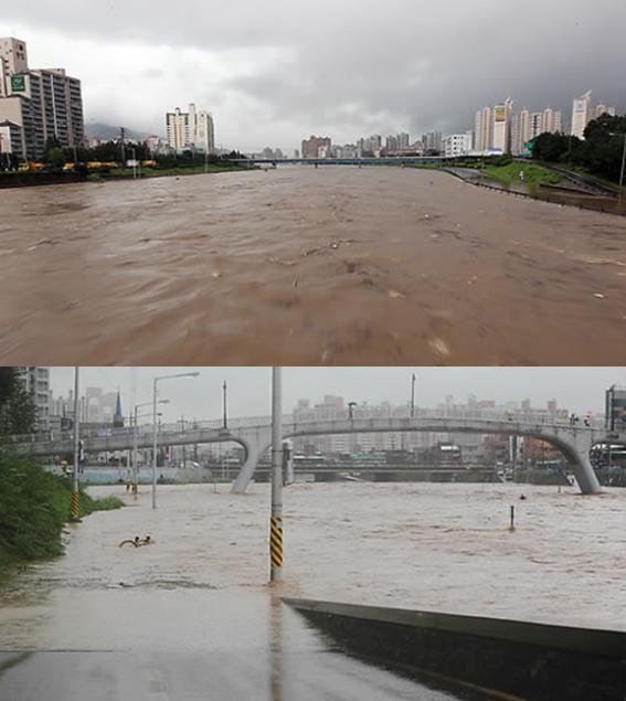 URL복사 기사공유하기 스크랩 프린트 메일보내기 글씨키우기 중랑천에 홍수주의보가 발령됐다. 7월27일 새벽부터 서울 및 수도권 등 중부지방에 내린 폭우로 27일 오전 서울 동부간선도로 중랑교 부근 일대가 폭우로 일부 침수됐다. 소방방재청은 “중랑천하류지역 하천범람 등의 피해가 우려되니 피해예방에 유의하길 바란다”고 당부했다. 내일까지 서울·경기와 충청북부·강원도에는 50~150mm의 많은 비가 더 내릴 것으로 전망된다. (사진=연합뉴스) 저작권자 © 소비자가 만드는 신문 무단전재 및 재배포 금지 박기오기자 다른기사 보기 URL복사 기사공유하기 주요기사 삼성전자, 중남미 AI 가전 판매량 40%↑...'비스포크 AI 콤보' 매출 80% 늘어 삼성카드, 2026년 정기 임원인사... 상무 3명 승진 삼성자산운용, 임원인사 실시…부사장 1명 승진 삼성증권, 정기 임원인사 단행…부사장 1명·상무 4명 승진 동아제약 '오쏘몰', CU·GS25에서 '오쏘몰 이뮨 1일분' 출시...소비자 접점 확대 삼성화재, 2026년 정기 임원인사 실시... 부사장 4명·상무 7명 승진
