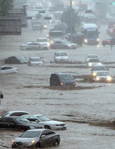 27일 서울 지역에 내린 기습 폭우로 인해 강남역, 대치역, 사당역, 1호선 오류동역 등에서 침수 피해를 입었고 우면산은 산사태가 일어나 우면산 인근 형촌마을 60가구가 고립됐다.