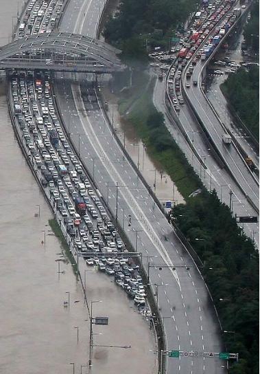 올림픽대로 여의도 부근은 양방향 모두 통제됐고, 김포방향 반포대교에서 한강철교까지 통제, 또 한강대교에서 원효대교까지는 양방향 모두 통제됐다.