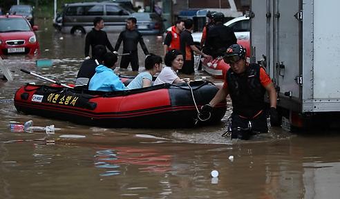 이날 오후 12시30분께 경기도 광주시는 경안천 수량이 순식간에 불어나 범람했다. 이 여파로 광주시 송정동 일대의 수백여채 주택이 침수됐으며 수백여명의 주민들이 대피했다.