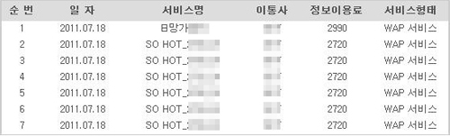 사용내역서에는 동일한 콘텐츠를 이용한 기록이 연속적으로 무려 10여 건에 달했다. 한 건당 3천원에 약간 못 미치는 금액이었다.
