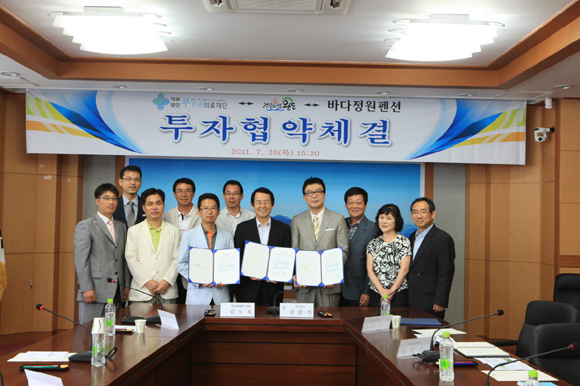 완도군(군수 김종식)는 28일 의료와 리조트 등 휴양기능을 접목한 복합의료시설 푸른뫼의료재단, 관광숙박시설 확충을 위한 바다정원펜션 2개기업과 275억원의 투자협약을 체결했다.