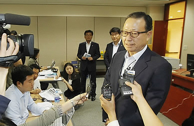 이날 새벽 발생한 화물기 추락 사고 때문에 윤 사장은 시종일관 침통한 표정이었다.