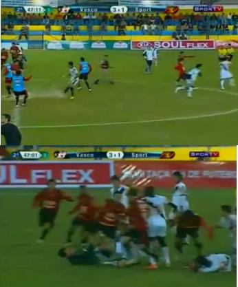 지난 25일(현지시각) 브라질 19세 이하 선수들이 경기를 치르는 대회 BH컵에서 바스코 다 가마와 스포르트 헤시피 선수들은 경기 내내 치열한 신경전을 벌이다 경기 종료 직전 결국 몸싸움으로 이어졌다.