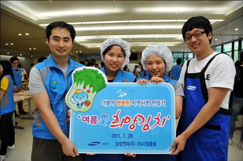 삼성전자는 지난 28일 경기 나노시티 화성캠퍼스에서 DS(디바이스솔루션) 사업총괄의 대표적 봉사활동인 '여름애(愛) 희망김치 담그기' 행사를 가졌다고 29일 밝혔다.