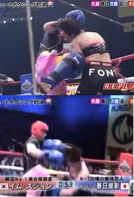 지난 3일 일본 지방파 방송 TBS ‘불꽃체육회 TV 슛 복싱대결2’에서는 한국의 ‘얼짱 파이터’로 불리는 임수정 선수가 일본 개그맨과 성대결을 펼쳤다.