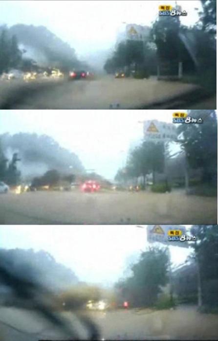 28일 SBS '8뉴스'는 우면산 산사태 현장을 지나던 차량 블랙박스 영상을 공개했다.