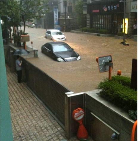 이에 대해 사진을 올린 게시자는 “지난해 물난리 때 빌딩 주차장이 침수돼 주인이 차 값을 다 물어줬다. 이후로 건물주가 빗물이 들어올 수 없게 철저히 공사를 하고 보험까지 들었다”고 설명했다.