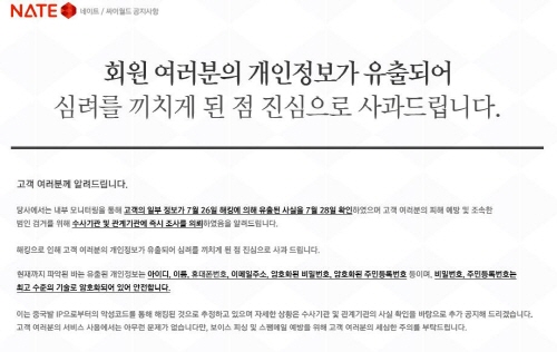 29일 SK커뮤니케이션즈는 네이트·싸이월드의 3500만 회원 개인정보 유출 사건과 관련 앞으로 주민등록번호·주소 등의 개인정보를 보관하지 않겠다고 밝혔다.