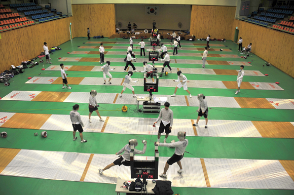 지난 26일부터 오는 4일까지 10일간의 일정으로 40여명의 펜싱 국가대표 선수단이 순창군 실내체육관을 찾아 여름 전지훈련중이다. 특히 지난 29일은 국가대표 선수단의 평가전이 개최돼 그 열기가 더욱 뜨거웠다.