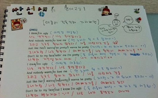 산다라박은 지난 29일 자신의 미투데이에 투애니원 ‘어글리’의 영어 가사를 직접 해석한 노트를 올렸다.