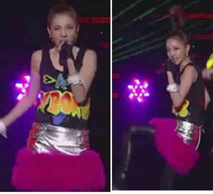 산다라박은 이날 무대에서 독특한 핑크치마와 함께 야자수 헤어스타일로 팬들의 시선을 사로 잡았다.