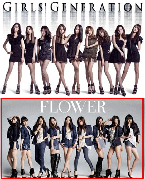 지난 27일 쇼케이스를 통해 모습을 공개한 일본 걸그룹 플라워는 9명의 멤버로 이뤄진 10대 여성그룹이다. 일본 남성 아이돌그룹 에그자일 백댄서와 모델 등으로 이뤄져 있는데 이들이 눈길을 끄는 것은 이들의 외양이 소녀시대와 흡사하기 때문이다.