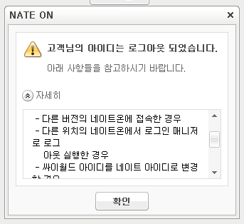 자신이 네이트온에 접속하고 있는 동안 ‘다른 위치에서 로그아웃을 실행했다’는 팝업창이 열리며 사용 중이던 메신저가 종료가 되는 상황이 수시로 발생했던 것.