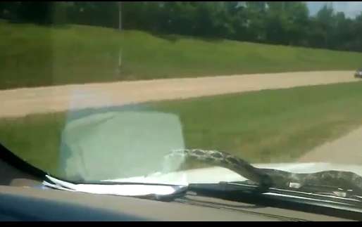 이 뱀은 차 앞유리 오른쪽에서 등장해 점차 왼쪽으로 옮겨갔으며 약 2분 후 어디론가 떨어졌다.