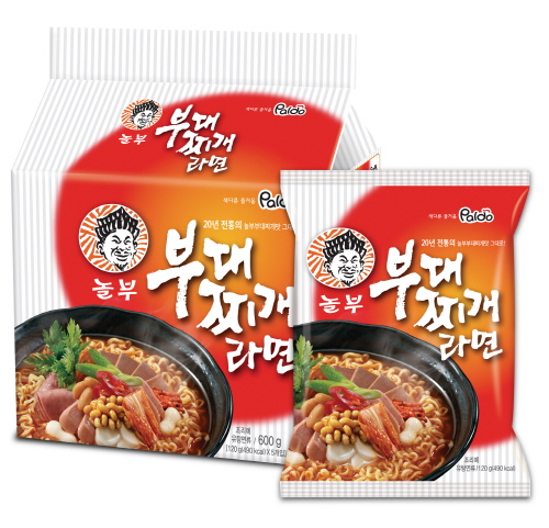 ‘틈새라면’과‘봉희설렁탕’, ‘부산밀면’등 그동안의 ‘맛집 시리즈’를 잇는 야심작 ‘놀부부대찌개라면’은 진한 햄과 소시지 국물 맛이 잘 익은 김치맛과 어우러져 정통 부대찌개 맛을 구현한 것이 특징이다.