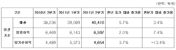 SK텔레콤은 지난 2분기 매출 4조410억원, 영업이익 6천597억을 기록했다고 4일 공시했다. 작년 같은 기간과 비교하면 각각 5.7%, 2.0% 증가한 수준이고 지난 분기에 비해서도 3.4%, 7.4%씩 늘었다.