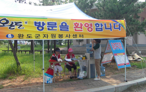 완도군(자원봉사센터장 김종식)이 하계 피서철을 맞아 우리 고장을 찾는 관광객의 즐거운 피서를 위해 자원봉사활동을 실시하고 있다.