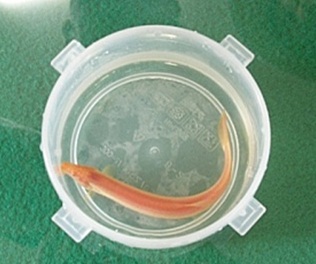 신 씨가 잡은 황금 미꾸라지는 약 15cm 몸길이에 황금색을 띄고 있는 모습이다.