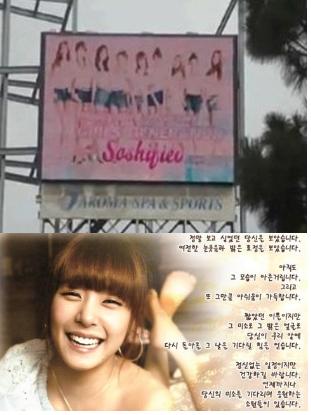 걸그룹 소녀시대 팬들이 데뷔 4주년을 맞아 미국 LA에 전광판을 설치하고 소녀시대 홍보영상을 띄운것.