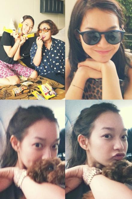 공개된 사진의 신민아는 지인과 과자를 먹거나 애완견을 안고 즐거워하고 있다.