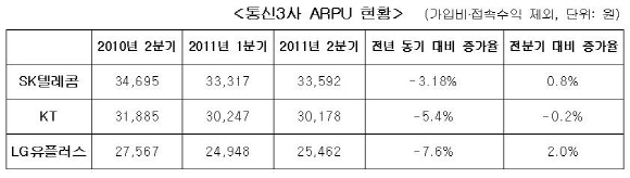 하지만 2분기 들어 통신3사의 ARPU는 회복세를 보였다.