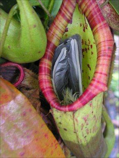 정원사 나이젤 휴잇 쿠퍼는 최근 자신의 정원을 살피던 중 이 육식식물이 작은 새를 잡아 먹은 것을 목격했다. 그는 식충식물이 곤충이 아닌 새를 잡아먹은 광경에 “정말 큰 충격을 받았다”고 말했다.
