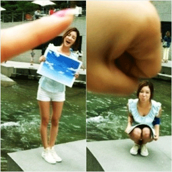 사진 속 NS윤지는 원근법을 이용해 카메라 렌즈 바로 앞에서 손으로 장난을 쳤던 것.