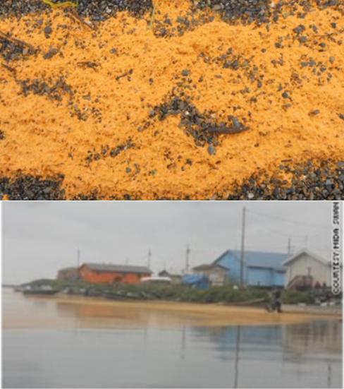 이 물질은 오렌지 빛을 띄고 있으며 만지면 기름같은 느낌이 난다고 주민들은 전했다.