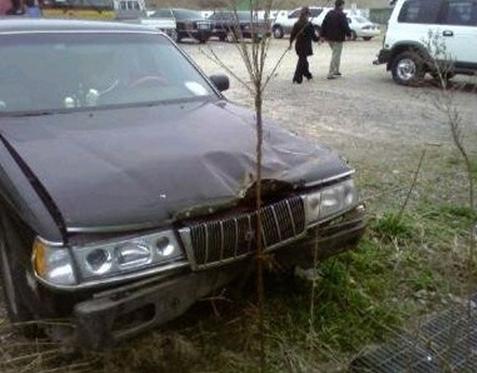 최근 온라인 커뮤니티에서는 작은 나무와 부딪혀 찌그러진 차가 화제다.