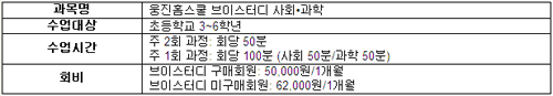 회사 관계자는 "웅진홈스쿨은 전문 교사의 집에 마련된 공부방에 회원이 방문해 학년과 수준에 따라 조직된 4~6명의 학생이 함께 공부하기 때문에 학습에 대한 자극을 받을 수 있고, 학원보다 가깝고 편안한 곳에 있기 때문에 아이들의 안전이 보장된다는 장점이 있다"고 말했다.