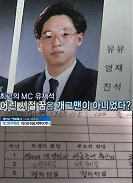 공개된 유재석의 생활기록부에는 우수한 성적에 이어 장래희망이 '정치외교'라고 적혀 있어 눈길을 끌었다.