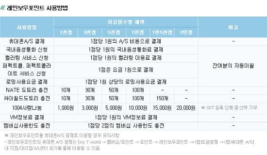 하지만 잘 찾아보면 통신사 마일리지의 활용처는 상당히 많다. 실제로 SK텔레콤 '레인보우 포인트'의 경우 지금도 휴대폰 AS, 국내 음성통화, 로밍사용요금, 컬러링 서비스, 싸이월드/네이트 도토리 충전 등의 결제에 이용할 수 있다.