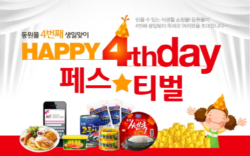 동원F&B 식품전문쇼핑몰, 동원몰(www. dongwonmall.com)이 오픈 4주년을 맞아 고객감사 할인행사를 실시한다.