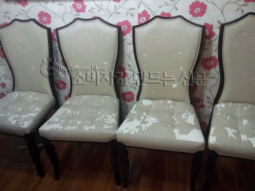 유명 브랜드 가구업체의 식탁의자가 구입 후 몇 달 만에 흉하게 시트가 벗겨져 소비자를 당황케 했다.