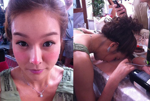 현영은 9일 자신의 트위터에 “주식의 중심에서 정신을 잃다”란 메시지와 함께 와인 병을 든 채 식탁 위에 머리를 파묻고 있다. 이는 주가 폭락으로 인한 피해 상황을 표현 한 것.