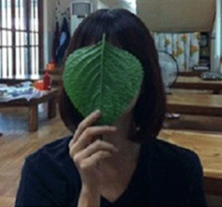 사진에서 박소현은 깻잎 한장으로 얼굴을 가려 작은 머리의 최강자임을 인증했다.