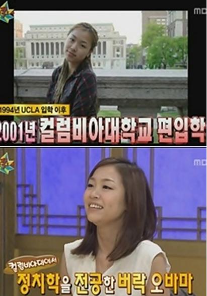그녀는 미국 명문대 컬럼비아대학을 졸업해 미국 대통령 버락 오바마와도 동문임을 밝혔다.