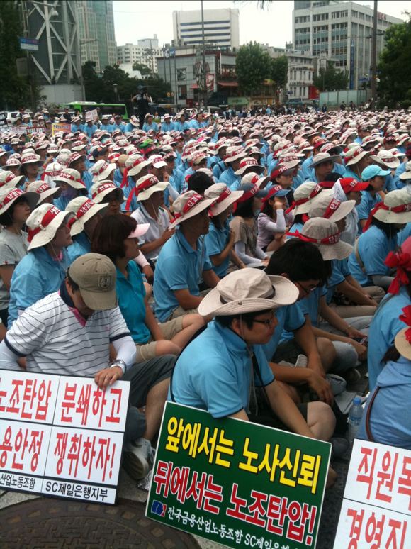 SC제일은행노동조합 전 조합원이 11일 서울 상경투쟁을 벌였다.