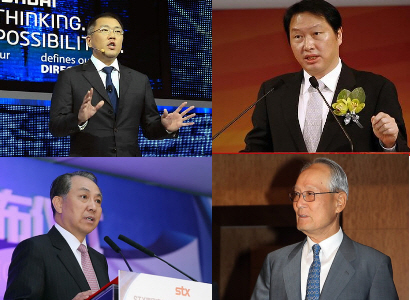 실적 호조와 주가 상승, 일감 몰아주기로 승승장구하던 재벌 오너들에 매서운 삭풍이 몰아치며 시련을 예고하고 있다.(사진=연합뉴스, 왼쪽 위에서부터 정의선 현대차 부회장, 최태원 SK 회장, 강덕수 STX 회장, 이준용 대림산업 회장)