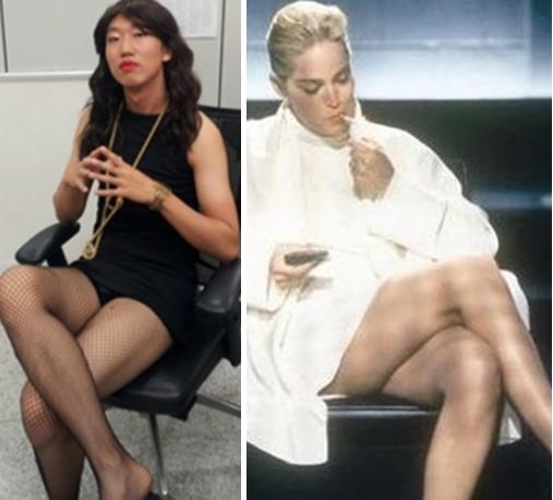 개그맨 김경진이 샤론스톤으로 완벽 변신했다.