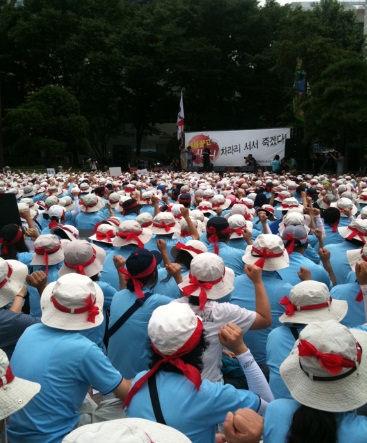 이에 SC제일은행지부 파업 조합원 2천500여명은 지난 11일 서울 보신각 앞에 집결해 국민 호소문과 함께 강도높은 투쟁의지를 드러내기도 했다.