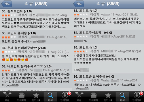 개발사가 앱 업데이트 후 사용자들이 쌓아올린 포인트를 감쪽같이 소멸시켜놓고 ‘마음에 안 들면 탈퇴하면 된다’는 식의 무성의한 태도로 대응하고 있는 것.