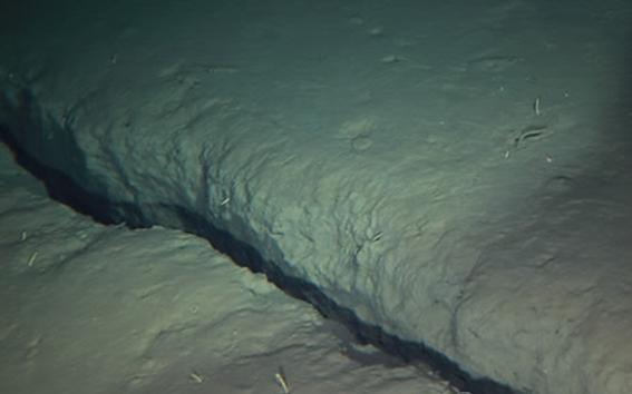 사진은 지난 10일 동일본대지진 진원 지역에 해당하는 지점(북위 38도39분, 동경 143도36분, 수심 3천218m) 을 찍은 사진이다. 사진의 해저 균열은 남북 방향으로 폭 20㎝ 정도이다. 이는 2006년에는 없었던 것이다. 이 해저 균열은 길이가 수십 m는 넘을 것이라고 일본해양연구기구는 밝혔다. (사진=연합뉴스)