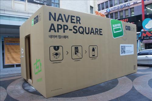 네이버는 종이상자 형태로 만든 오프라인 체험공간에 전문 안내요원을 배치해 네이버 앱 설치와 음악검색, 일본어 비주얼검색, 와인상표 비주얼검색 등 네이버 앱만의 기능을 쉽게 체험할 수 있도록 했다.