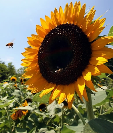 보통 해바라기는 2~3미터까지만 자라지만 그보다 몇배가 더 큰 7m의 키로 눈길을 사로잡고 있는 것.