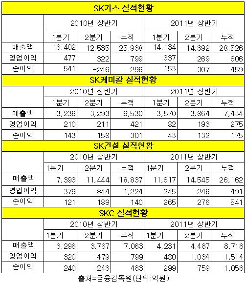 SK건설의 영업실적도 큰 폭으로 개선되고 있다. SK건설의 올 상반기 매출액은 건설경기 침체에도 불구 2조6천162억원으로 지난해(1조8천837억원)보다 크게 늘었다. 순이익도 140억원에서 541억원으로 3배 이상 늘었다.